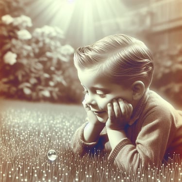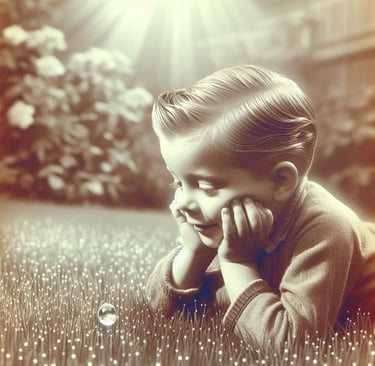 Enfant, allongé sur l'herbe fraîche du jardin, mon regard était attiré par une simple goutte de rosée, étincelante sous les premiers rayons du soleil. Dans cet instant magique, le monde entier semblait se refléter en miniature, vibrant de couleurs et de promesses. C'était comme si cette unique gouttelette renfermait en elle la lumière de toutes les années à venir, illuminant mon chemin à travers les mystères de la vie.